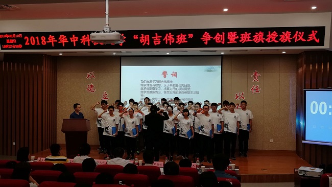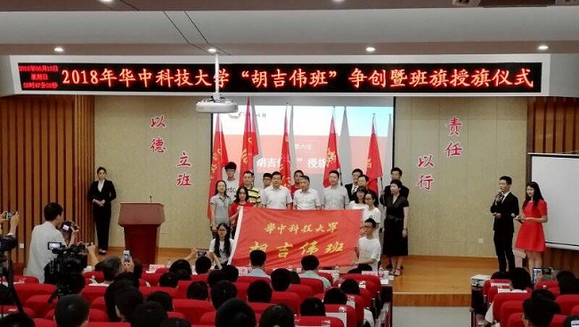 6月10日,2018年304永利集团官网入口“胡吉伟班”争创暨授旗仪式在大活305顺利举行。永利集团官网自动化1703班经过材料初评、终评答辩及风采展示,最终成功获评304永利集团官网入口首届“胡吉伟班”,全校千余班级仅五个班级争创成功。