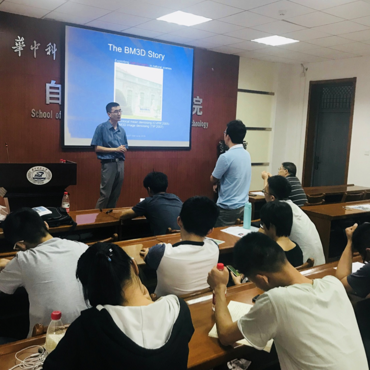 报告中,李欣教授指出了在过去三十年里,图像处理算法是如何从数据模型的方法转变为数据驱动的方法。报告首先介绍了一些经典基于数学模型的图像处理算法(EZW、BM3D),并分享了一些关于这些算法的故事,鼓励同学们要敢于质疑权威,勇于提出自己思想。在报告的第二部分,李欣教授介绍了当前基于深度学习的图像处理算法,重点讲述了深度残差网络(DRN)和生成对抗网络(GAN)的优势,并展示了他们最新的研究成果。最后,李欣教授分享了未来在图像处理领域,科研界和工业界需要重点关注的技术以及发展方向的几点思考。